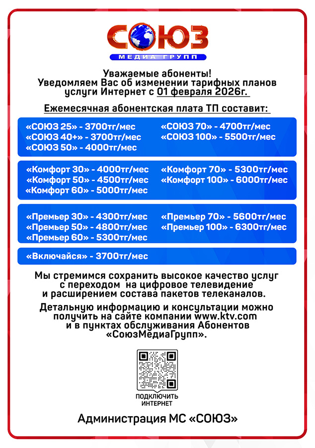 Уважаемые абоненты КТВ СОЮЗ!