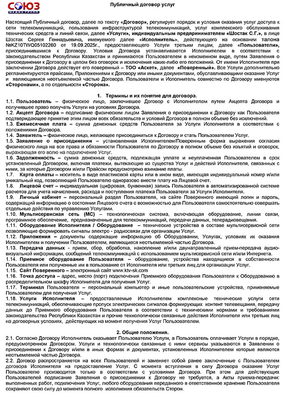 Услуги передачи данных (городская локальная сеть «СОЮЗ»